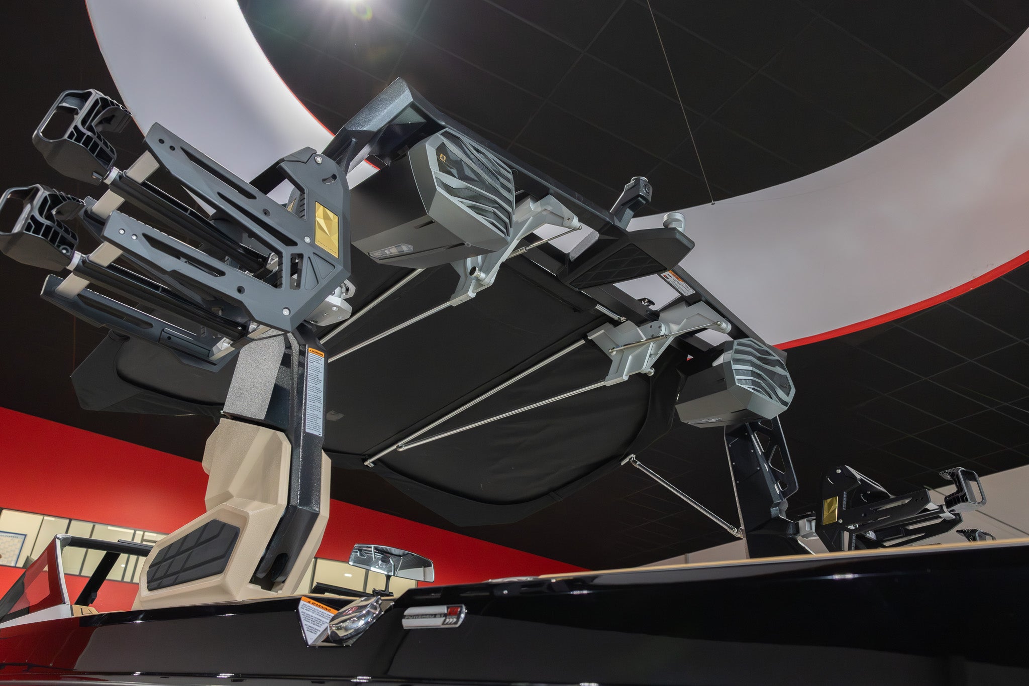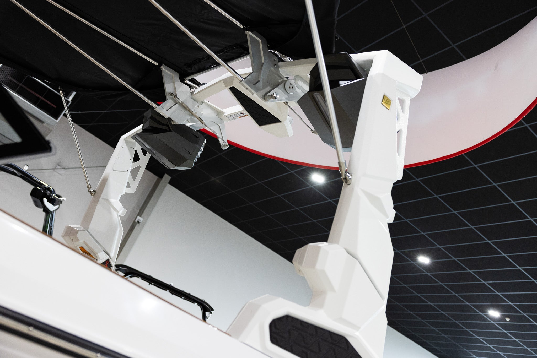 - Actuated Flight Control Tower with Strapless Board Racks and Bimini Top w/ Surf Pockets