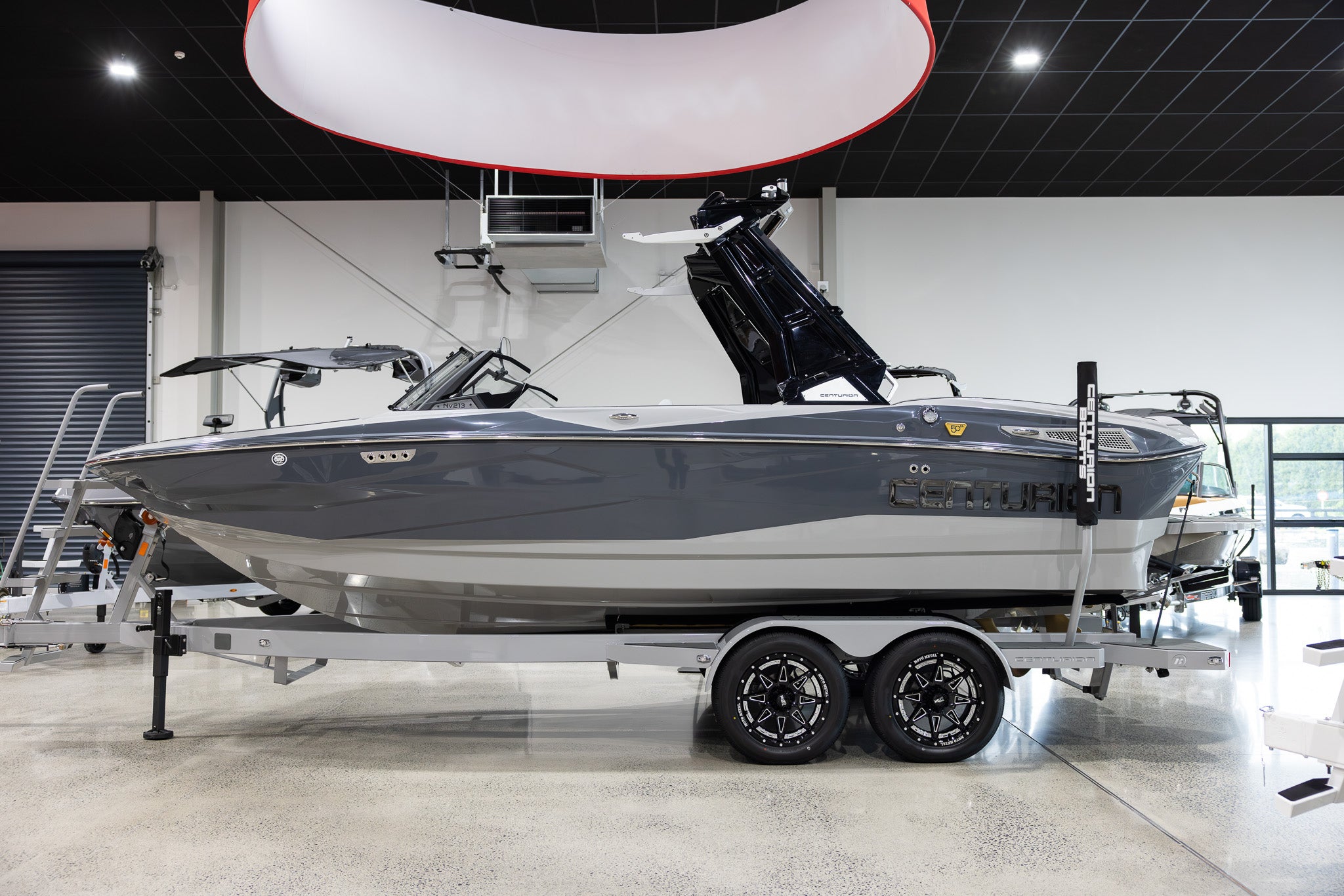 Celebrating 100 years, the 2025 Centennial Edition Ski Nautique 200 features a bold Centennial Black Metal Flake finish. Purpose-built for performance, it remains the premier 3-event towboat with soft wakes, open-bow comfort, and precision handling.